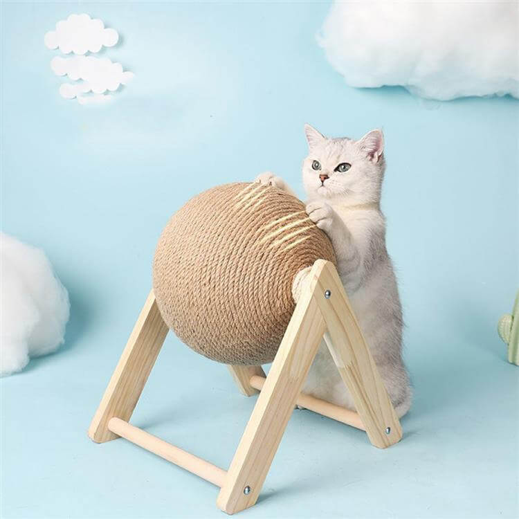 Interaktyvus žaislas katėms – besisukantis sizalio kamuoliukas draskymui, kuris padeda užimti augintinį ir nukreipti nagų galandimą į tam skirtą vietą. Stabilus medinis pagrindas neleidžia žaislui lengvai apvirsti, o komplekte esantis katžolės maišelis dar labiau sudomina katę žaidimu. Puikiai tinka kasdieniam aktyvumui ir pramogai.