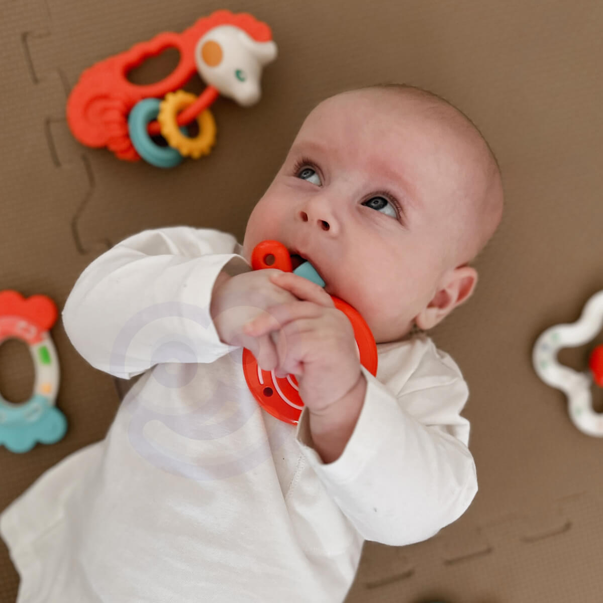 Raktažodžiai SEO: kūdikių kramtukas, barškučių rinkinys, dantukų kramtukas, sensorinis žaislas kūdikiui, silikoninis kramtukas, WOOPIE kramtukai.
