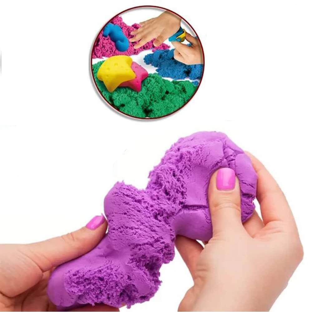 - Minkštumas ir malonus lietimui: Kinetinis smėlis visada jaučiasi švelnus ir drėgnas, tačiau rankos lieka sausos.
