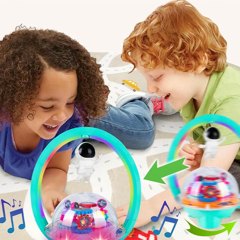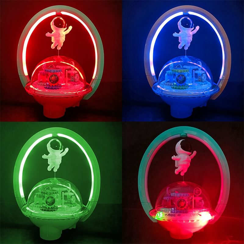 Spalvingas levituojantis astronautas su linksma melodija ir LED foniniu apšvietimu.
