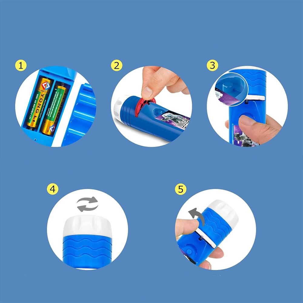 Projektoriaus ir žibintuvėlio šviesa, rodanti stebuklingas pasakas, sužavės Jūsų vaiką !