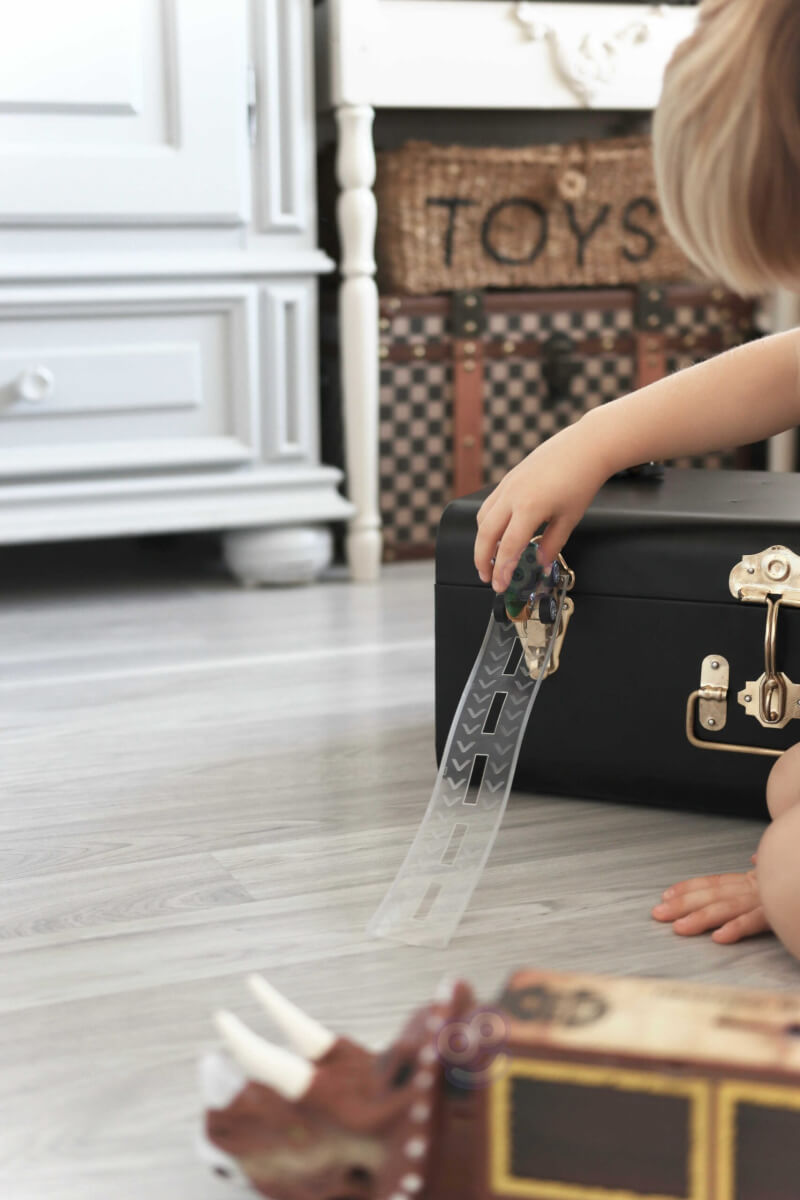- 3 dinozauro tematikos automobiliai su trauk-atgal mechanizmu: patraukite atgal, paleiskite ir stebėkite, kaip važiuoja patys