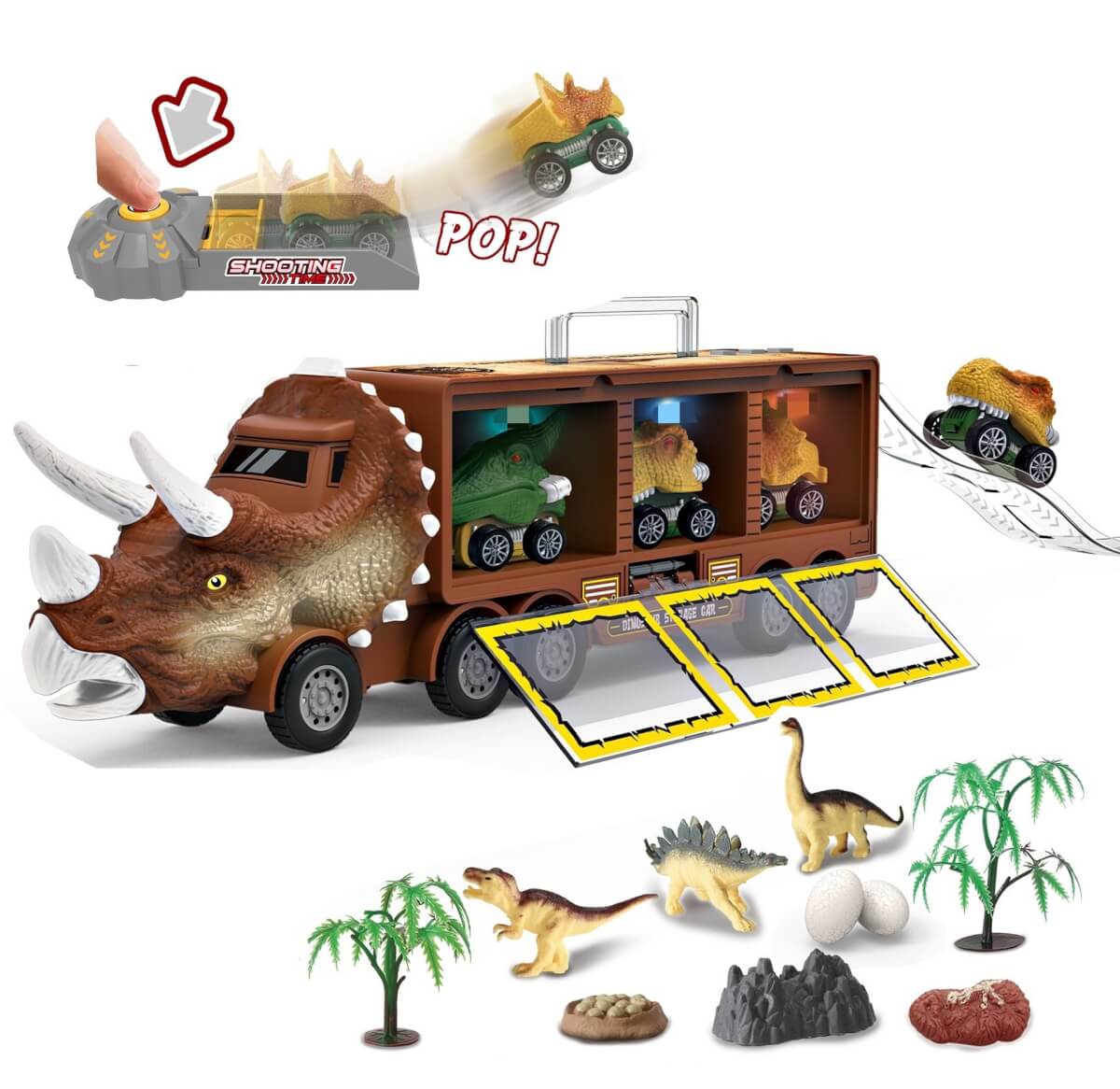 Woopie dino sunkvežimis – tai visas dinozaurų nuotykių pasaulis viename rinkinyje: spausk, paleisk ir leisk fantazijai įsibėgėti!