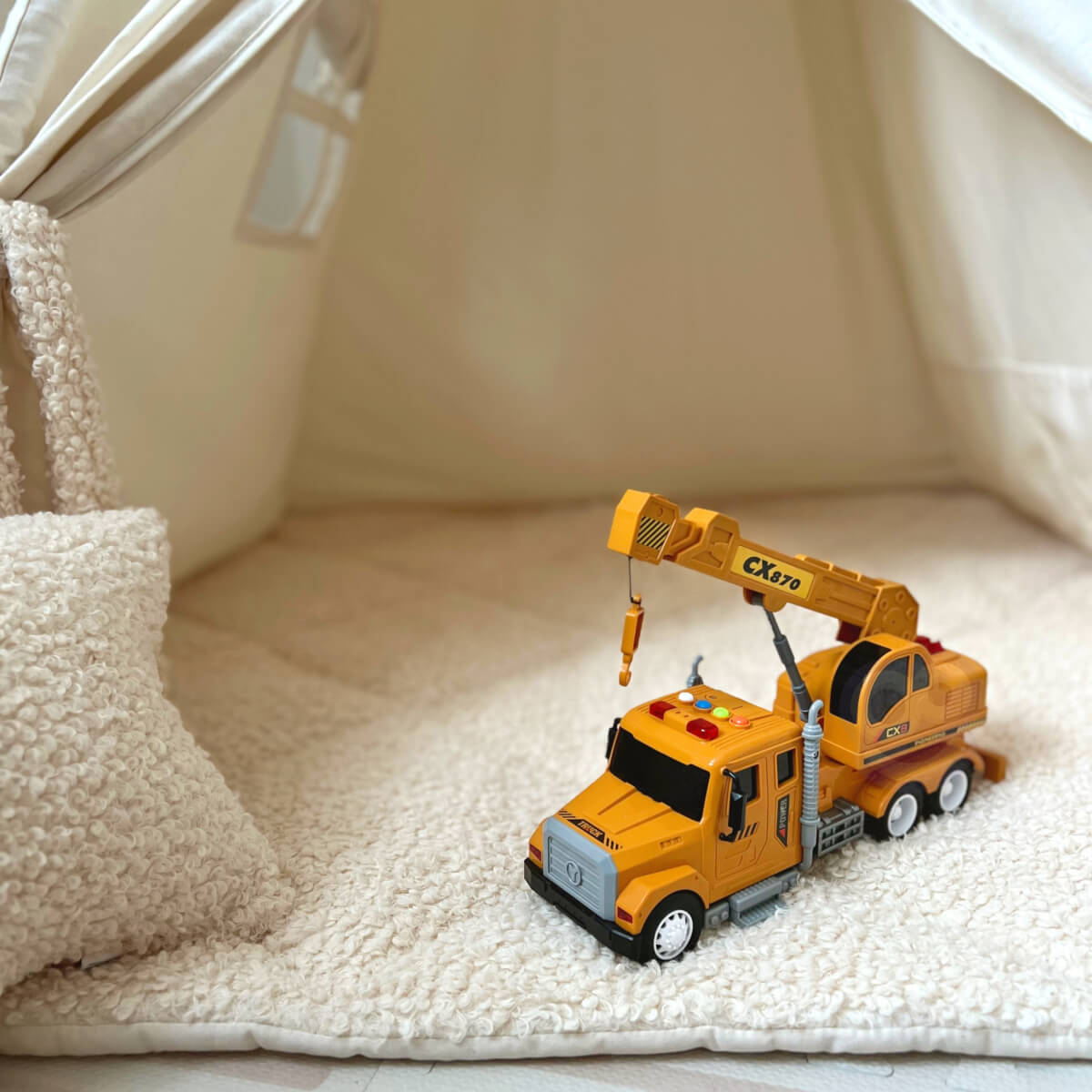 Paverskite žaidimų kambarį tikra statybų aikštele! Realistiškas WOOPIE žaislinis kranas su šviesos ir garso efektais, reguliuojama strėle ir kabliu įtrauks vaiką į kūrybingus vaidmenų žaidimus valandų valandas.