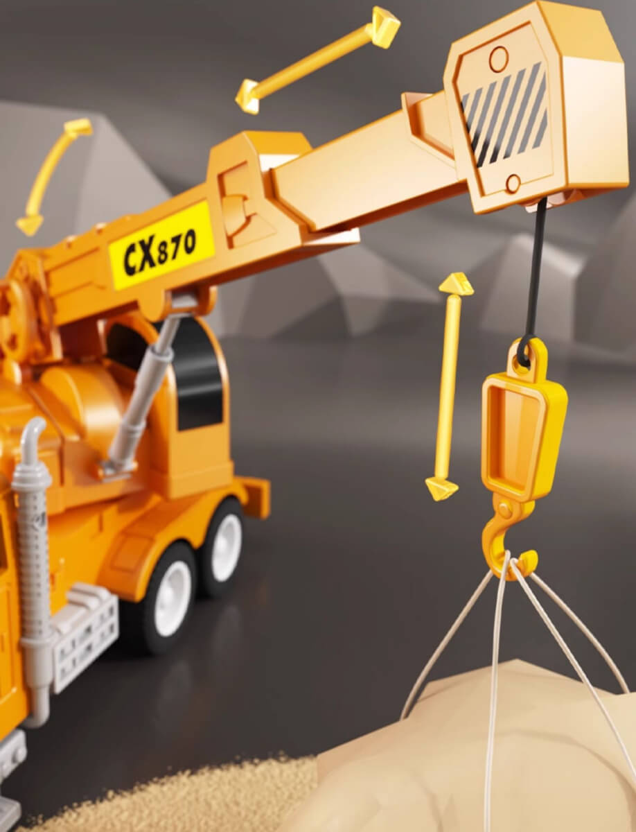 - Tipas: interaktyvus žaislinis kranas/sunkvežimis
